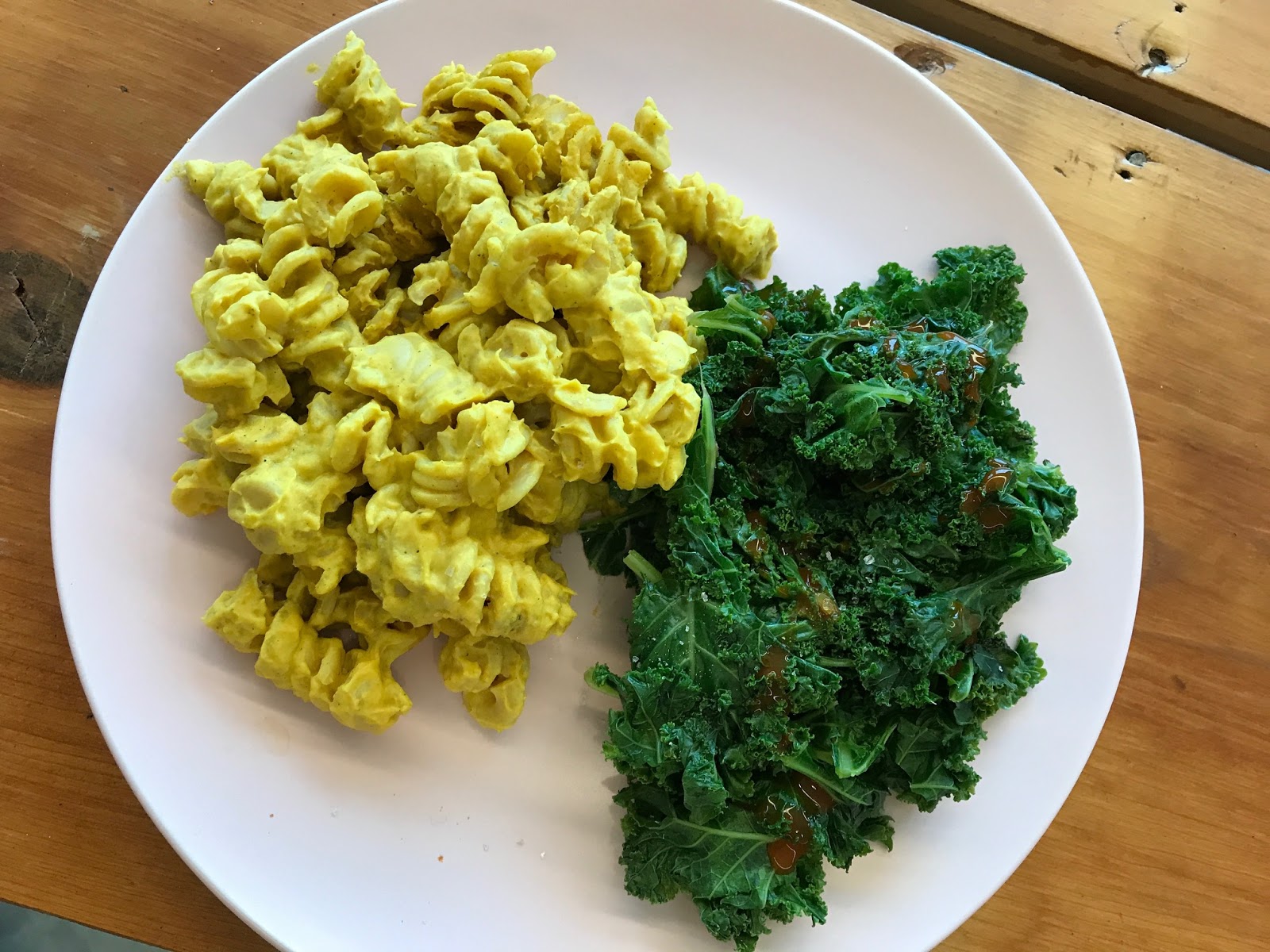 Lunch was leftover Butternut Squash Mac & Cheese with Steamed Kale. Yummy!