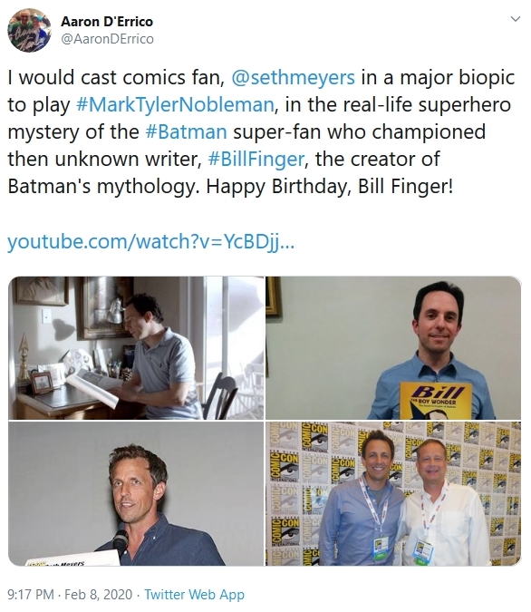 On 2/8/20, which would have been Bill Finger's 106th birthday, a tweeter named Aaron