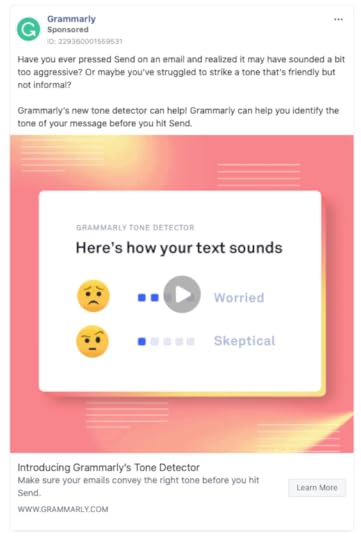 This is the golden rule to selling anything: Identify your target audience’s problem and solve it for them. When it comes to business professionals, they probably want a way to do their job more efficiently. In this ad, Grammarly illustrates what it’s like to regret the tone of an email when it’s too late to fix it, something every professional has cringed over.