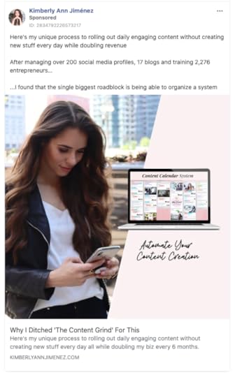 You can also mention how many customers, readers, or subscribers you have. If you’re promoting an event, mention how tickets are quickly selling out. If possible, use hard numbers to showcase your expertise, like Kimberly Ann Jimenez does in her ad. Also, since she created this program from scratch, it presents her as a thought leader in her field.