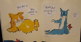 It seems, though, that the key isn’t having emotion and tension… rather, the timing of it.  A story told in dialogue only needs to use pace to capitalise on emotion and tension in order to build action and energy. As can be seen in Karl Newson and Mo Willem’s work, the emotion and tension are tracked carefully throughout the spreads, so that they build at the optimum time… Karl Newson and Tony Ross - I am a Tiger