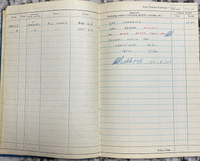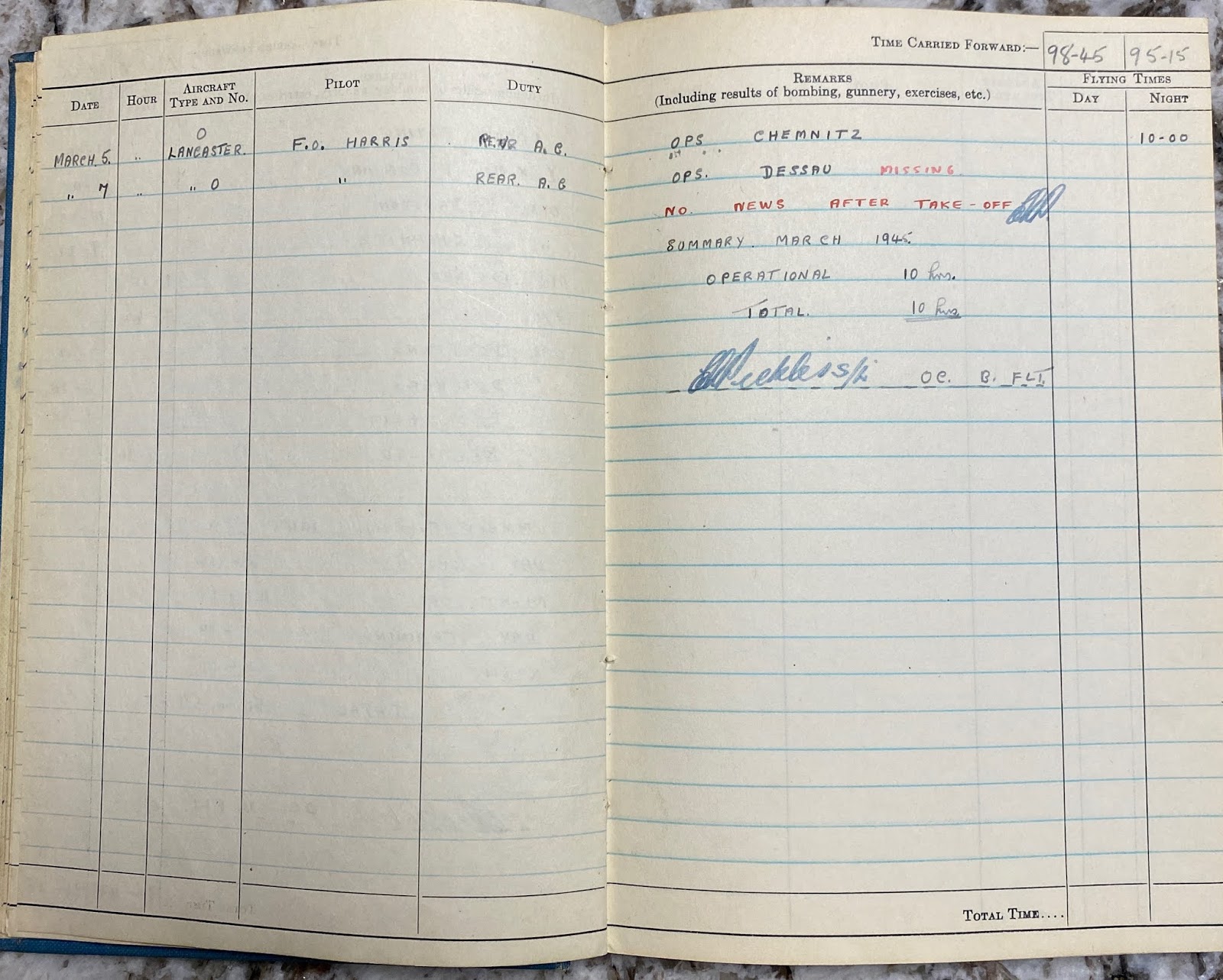 Log discrepancies were not uncommon, particularly since crew did not bring their logs with them on flights and the information contained within them usually came second or third-hand to whatever administrator was completing them on any given day. In some cases, log books were completed after-the-fact by airmen taking details from Squadron records which may or may not have been accurate. It is likely the book was mixed up with a Nielson Crew member as the result of a clerical error.