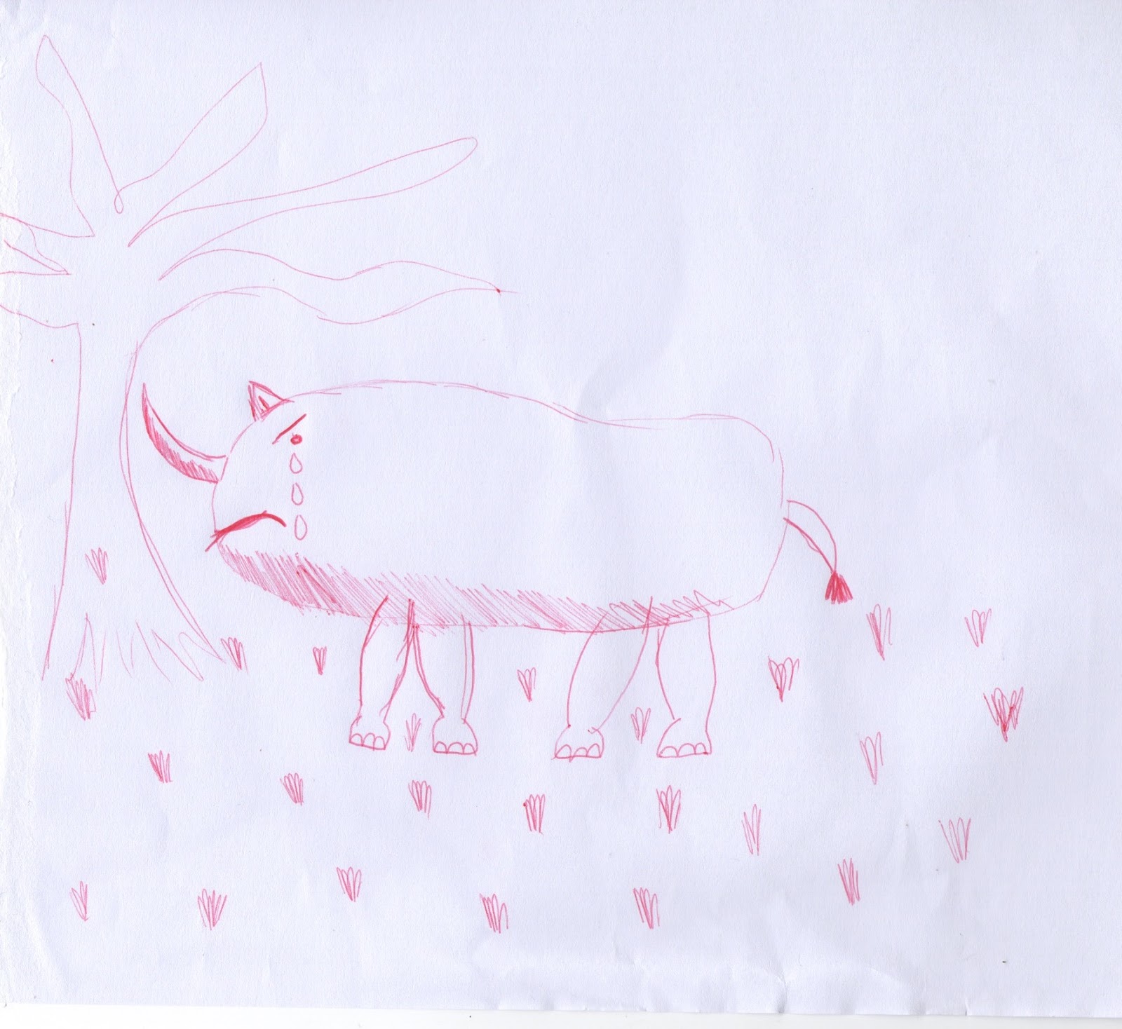 My son also came up with his own act of self-healing. He was floored by a sudden painful realisation that he couldn’t do all the things he wanted to do (he is very sporty) so took himself to his room, drew a picture of how he was feeling then placed it under his pillow. In the picture a rhino is weeping while ramming his head against a tree trunk.