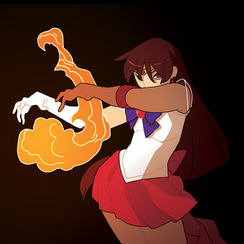 [Description: Rei Hino from Sailor Moon controlling a fireball. Dramatic lighting, just how she likes it.]