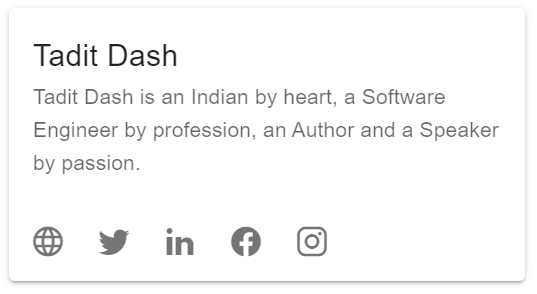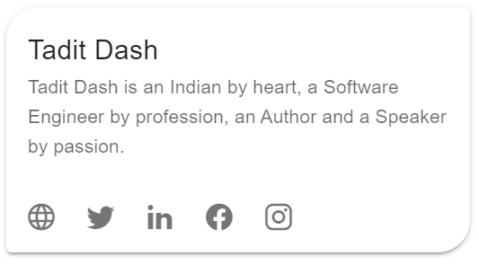 Tadit Dash is an Indian by heart, a Software Engineer by profession, an Author and a Speaker by passion.