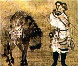Here's a Jurchen hunter (he's squinting at his arrow) and a sheepish sort of horse, with his eyes on us again.
