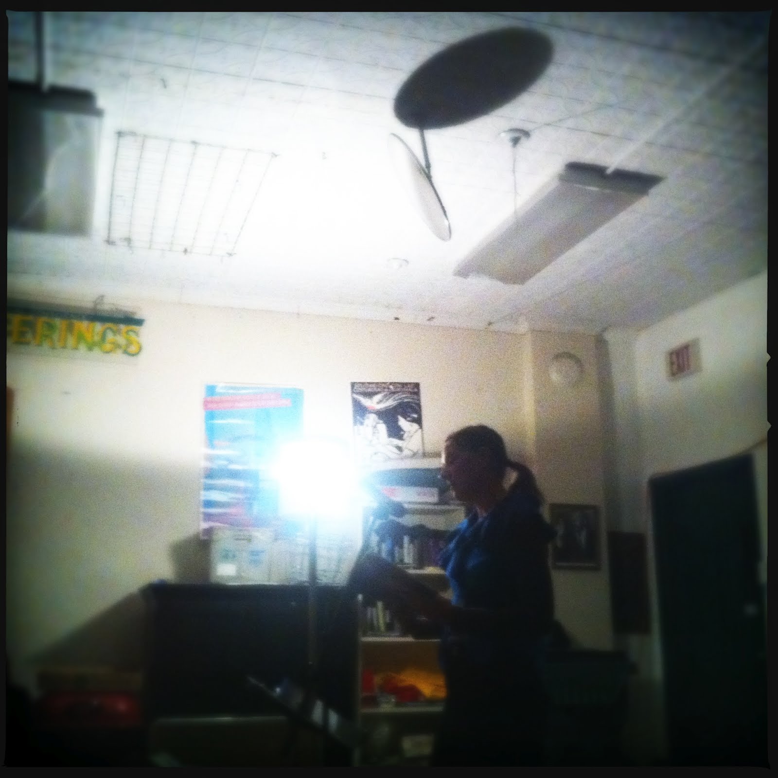 The second reader was a musician for many years. Now, a poet, teacher, student. He says he will "read from a number of my favorite poets." He says, "I only brought lady poets." I cringe. Then he says "lady poet" again, in case I missed it the first time. He reads the first poem to us. Declaims it. He stops to tell us: "Poetry works on a spiritual level other writing can't." I don't believe it. I want evidence. He reads the poem he says is his mission statement for the night. It is a dead poem. It arrives dead. He buries it. He reads another poem, the title of which may be a reference to Aldous Huxley or to the Doors, or he doesn't know the reference. The poem includes the line "feeling safe in the rapist's embrace." He reads the poem jauntily. I bow my head slightly and rest it on the tips of my forehead, preparing myself to continue, quietly, in my chair against a wall. He reads Sylvia Plaths' "Tale of a Tub." Also jauntily. He reads everything the same way. Maybe we all do, and I simply haven't noticed.