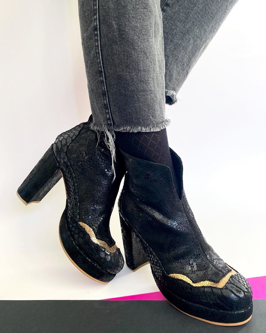 Gaytan nos invita a mundo glam lleno de color, texturas y brillos. ¿Su versión black de esa apuesta? El botín Estrella, estilizado y versatil, que también pueden personalizar con el tamaño de tacos y colores que prefieran.