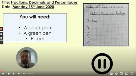 Anyway Chloe’s videos–and the rest of the videos her colleagues at Marine Academy Plymouth have produced–think carefully about this problem. There’s a bright clear reminder to “Press pause and have a go at your Do Now” but you’ll also notice that she often leaves a real time pause in there… she extends the dead time as a tacit reminder to students that they should be pausing. It’s like watching newscasters during a commercial break. It snaps you to attention a bit. And for kids who are slow to respond., well, they’re less likely to roll through by accident.