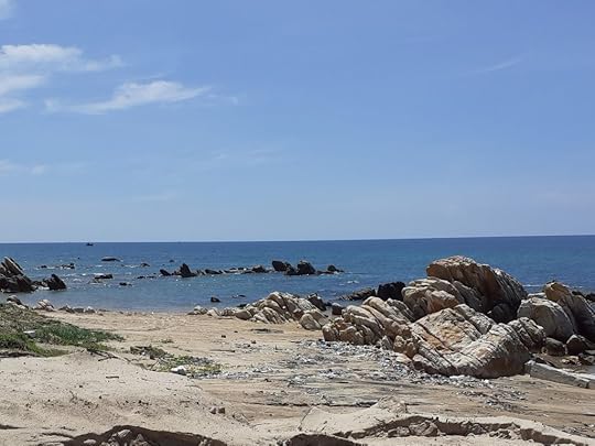 Hôm sau, anh Đỗ Hồng Ngọc lại hướng dẫn ra Phan Thiết theo con đường sát biển để ngắm nhìn nước biển trong xanh, trời xanh mây trắng, nhìn bãi Đá Nhảy từng hòn chồng lên nhau, làm tôi nhớ mấy câu thơ của Nguyễn Đức Sơn: