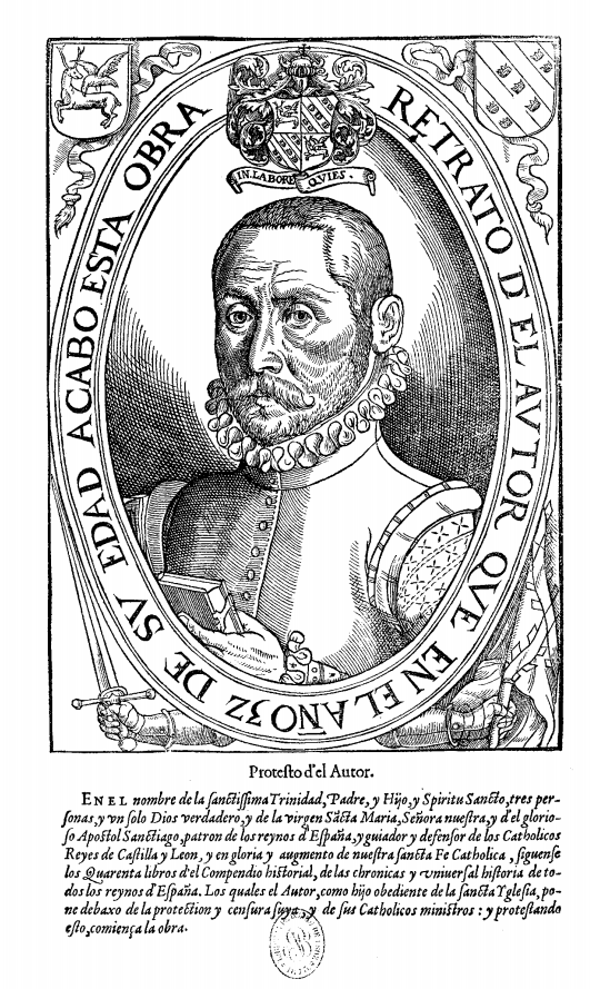 "LA ciudad de Leon al tiempo que cobró titulo Real y cabeça de reyno, comprehendió y abraçó cn si al titulo de Obiedo, y debaxo d'el nombre de reyno de Leon vino a entenderse, no solo Obiedo con sus Asturias, mas tambien Galizia con otras prouincias, y por tanto la descripcion que d'estos reynos se hará, sera debaxo de denomacion de reyno de León. El qual surtió este nombre de la ciudad de Leon, cabeça suya, pueblo insigne y bien conoscido, que segun en la narración d'el Emperador Marco Vlpio Trajano lo escreuimos, se llamó Lcgio, de donde se dixo Legion, y agora Lcon,cuyo assiento es en lo llano a pocas leguas de las vertientes de las montañas de las Asturias dc Ouiedo, de la qual ciudad dista veynte y dos leguas. El reyno de Leon, aunque en el principio de la recuperación d'España contenia terminos no muy anchos y espaciosos, defpues mediante la diligencia de fus Catholicos Reyes, vino a estenderse grandemente, tomando de poder de infieles muchas prouincias, cuyos limites son estos, scgun la opinion comun, que entre los doctos varones se platica, especialmcte de Florian do Campo.