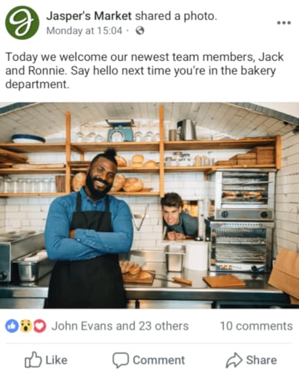 There are multiple ways to feature employees on Facebook. If it is consistent with your brand’s tone of voice, you can share a spontaneous picture of your team member with a funny caption. Also, you can use Facebook posts to introduce your new team members to your followers, like so: