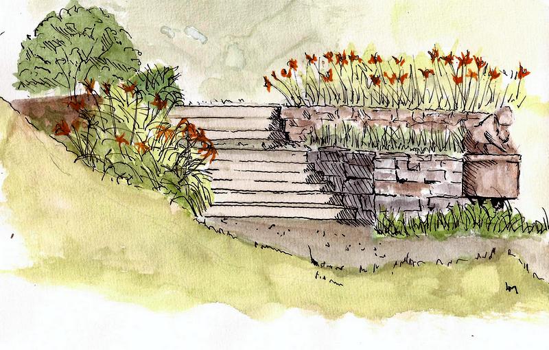 Me, I took a different approach. I decided to sketch a bunch of stairs. My thinking was simply that I needed practice sketching stairs. I didn’t think about the fact that to do so required that I sit out in the open, in bright sun, and that I would sweat myself to become ill from the process. I cooked, and cooked, and cooked, more concerned about lilies and concrete than how I was feeling.