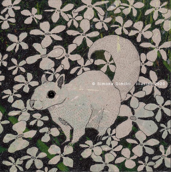 mixed media on grey cardboard / 15x15 cm