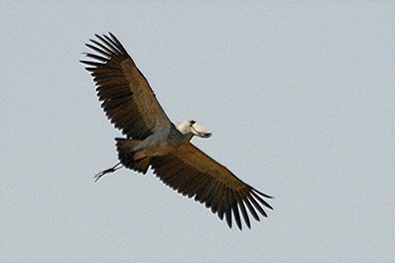 Awe-inspiring sight of a shoebill in flight (© Tom Tarrant/Wikipedia – CC BY SA.30 licence )