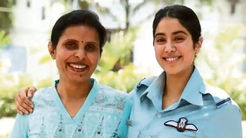The real Saxena and the celluloid form.This movie tells the story of Gunjan Saxena who fought against the stereotype to become one of the first female officers in the IAF to go war. She was eventually awarded for her courageous works during the Kargil War in 1999. The IAF stated its objection against the depiction of discrimination of its female officers. There were also factual errors and twisting of events which may actually cause an officer to be court-marshalled. Saxena was not really the first female officer in the IAF. Saxena also had a fellow female officer in her batch who was not mentioned at all. In reality, it is not a biopic but stretched far away from the real story.