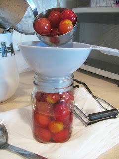 * If you can fruit in water, use the hot pack method. (That is to say, heat the fruit in water until heated through, then pack it into jars, add boiling water to cover, and process in a water bath canner.)