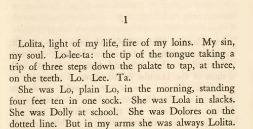Lolita de Vladimir NabokovLolita, Luz de mi vida, fuego de mis entrañas. Mi pecado, mi alma. Lo-lee-ta: la punta de la lengua hace un viaje de tres escalones desde el paladar para tocar, tres veces, los dientes.