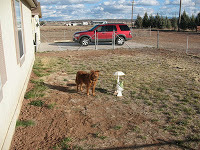 Rusty's new yard. "before picture"I know without a doubt he was scheduled - I remembered the conversation - and after some debate, he decided he could get to me but would be a couple of hours late. That actually worked better for me since I could get the ceiling fans and window sills cleaned that were in the carpeted areas.