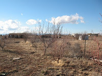 Christie and LanceBack inside, Lance texted me to tell me he and Christie would be there in an hour or two. I jumped in the car and made a run into Chino Valley for a McD salad. I no sooner got in the house when 'she' knocked on my door. Turns out 'she' is his wife Jeannette. As quiet as Bob is, Jeannette is a talker. We walked around in the chilly wind, her dark hair dancing around her shoulders, while she explained the irrigation system of the well. I learned all about the well workings and enough about the neighbors behind me to know there's something unlikeable about them. I do have water outside. The carpet guy didn't give it enough time to start flowing.I was famished by then, but Jeannette had so much to tell me. It looked like she was winding down when Lance and Christie pulled up. Christie had not seen our place yet so Lance walked her around the two and half acres while Jeannette waited to talk to Lance. Then we went through the well system again. As much as I enjoyed her, I had to finally beg off and go inside to eat before I fainted.