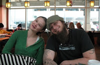 Christie and LanceBack inside, Lance texted me to tell me he and Christie would be there in an hour or two. I jumped in the car and made a run into Chino Valley for a McD salad. I no sooner got in the house when 'she' knocked on my door. Turns out 'she' is his wife Jeannette. As quiet as Bob is, Jeannette is a talker. We walked around in the chilly wind, her dark hair dancing around her shoulders, while she explained the irrigation system of the well. I learned all about the well workings and enough about the neighbors behind me to know there's something unlikeable about them. I do have water outside. The carpet guy didn't give it enough time to start flowing.