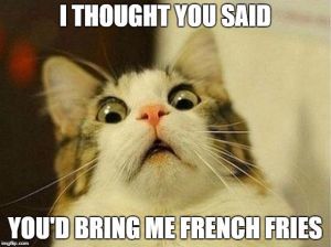 “French fries smell good and they taste good and they make me feel good when I eat them, gosh darnit!”