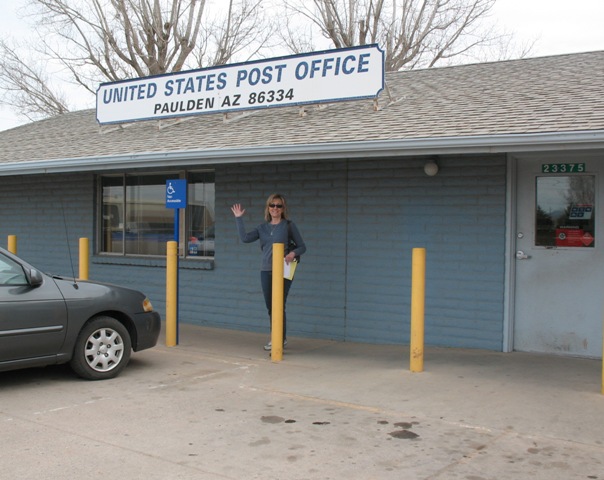 Hello from Paulden, AZI then stopped at the Paulden Post Office. The realtor told me I had to stop and introduce myself so we could get our mail. I found out the mailman will not come up my dirt road. We have to put a mailbox on a post at the end of the block with the others. Had to put the mail on hold until we can get that done. I got a kick out of the conversations and traffic in and out as I filled out the paperwork. Everyone knows everyone in this very busy, dinky, little PO. When I handed in the forms, I apologized for not knowing the 4 digit extension on the zip code. The postal worker said that was okay - she didn't either. I'm not sure if she was joking!I called the trash service and got that set up. The container will be delivered tomorrow. They charge $20 a month and I have to put the can across the street on Wednesday. At least they come down our street - but only on one side. That's one side better than the mailman.