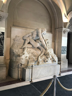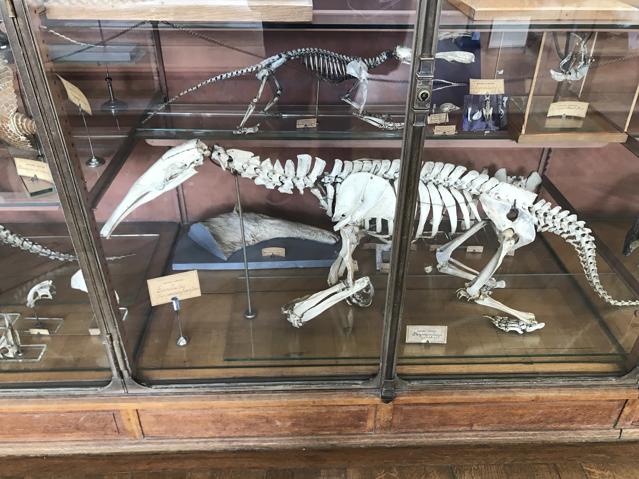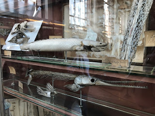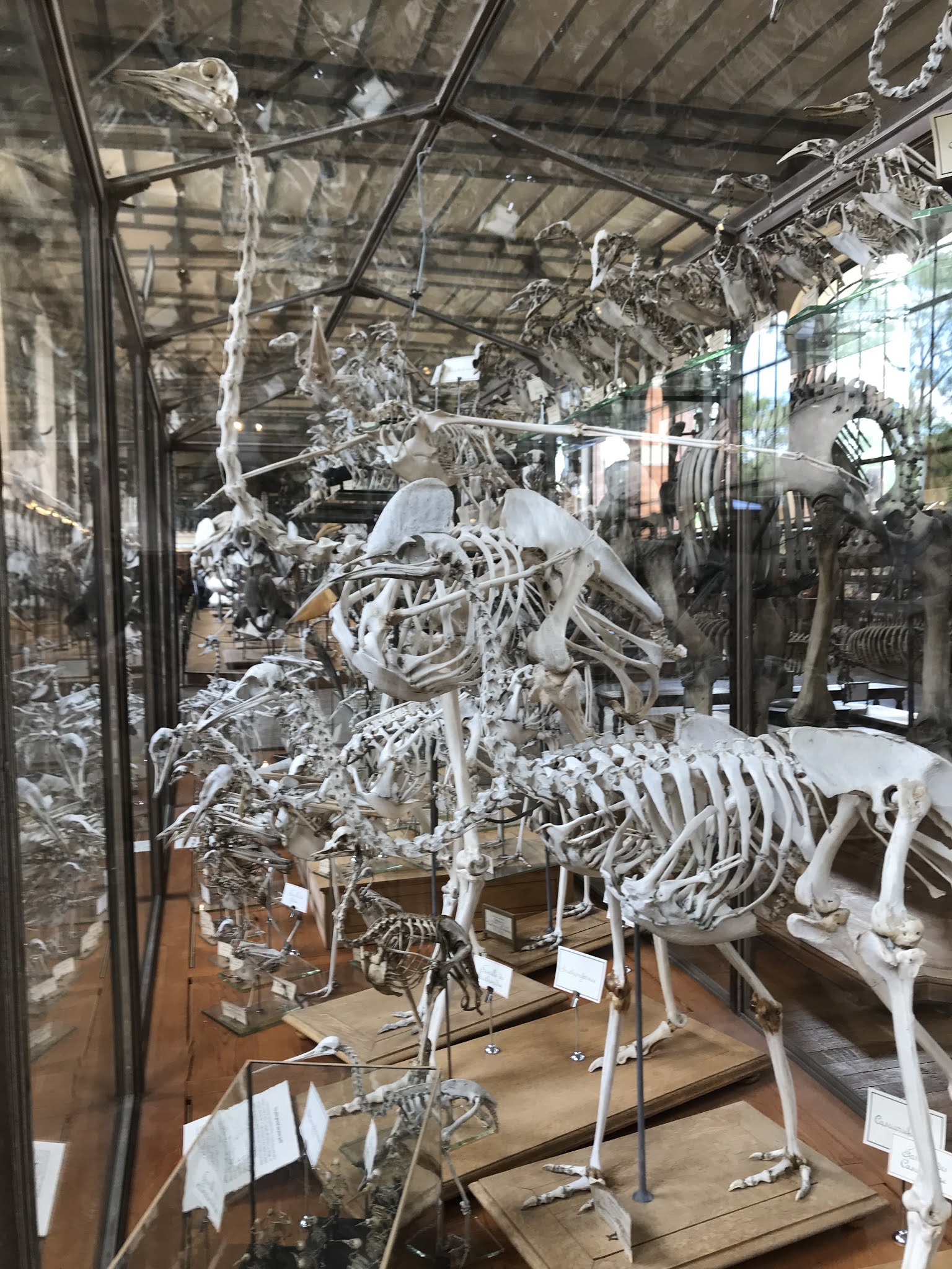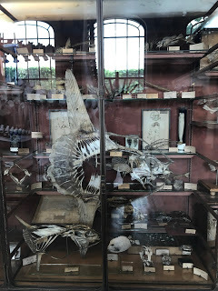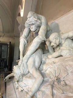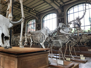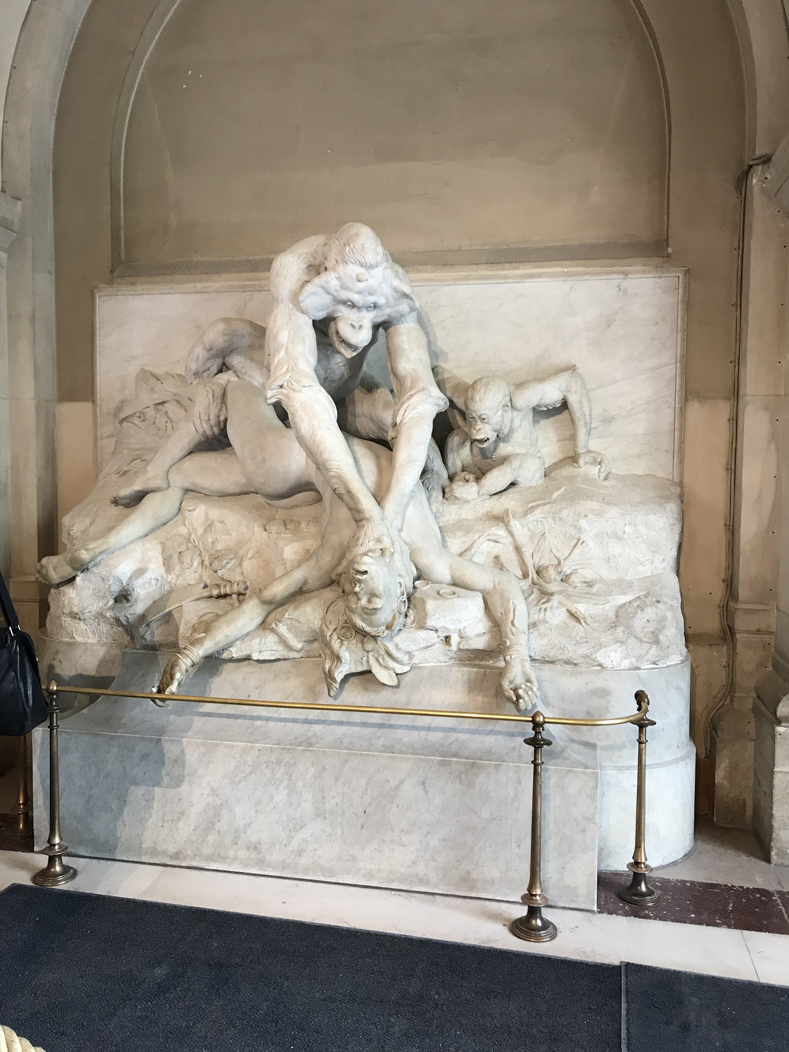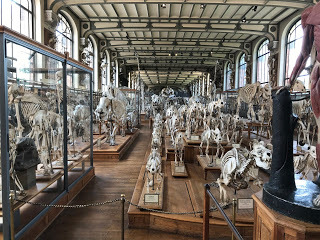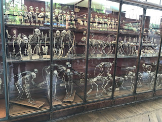 The next bit of seasonally appropriated travelogue comes from Paris, France. These photos were taken from the Gallery of Paleontology and Comparative Anatomy, part of the Muséum national d'histoire naturelle (National Museum of Natural History). Skeletons are a big Halloween trope and this building is crammed with them, both prehistoric and current creatures are all represented, along with some wet specimens and casts, including monsters. As an added bonus, when entering the gallery the first thing you are confronted with is this amazing statue, "Orang-outan éstranglant un Sauvage de Bornéo" by Emmanuel Fremiet (1824-1910).
