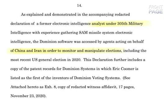 I guess you may be able to read on page 14: "agents acting on behalf of China and Iran", who had [Internet] access to the Dominion voting machines.