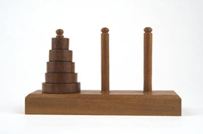 Consider the child's toy that is composed of a vertical post with different sized concentric rings stacked on it (usually different colors with biggest ring at the bottom and the rings get smaller as they go up). Picture also that there are three such posts, with the other two empty. The trick is to move all the rings, one at a time, from the post that holds the rings to one of the other posts. There's only one rule. You can move any ring you want but can never place a ring on top of a smaller ring.