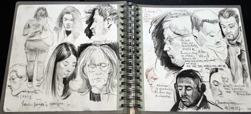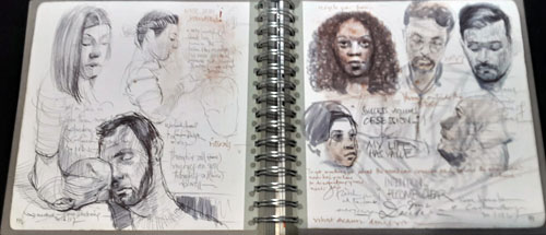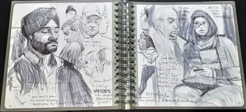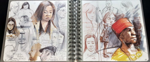 In true Adebanji style, though, that wasn’t enough. He’s done a series of a dozen or more videos associated with the book where he takes an example from it and recreates it right before your eyes, discussing the order of events as well as the whys and wherefores of his creations. So, if you’re even slightly interested in gaining the ability to draw people in the wild, you need this book. Here’s some examples from his book. Each of the 275 pages is like these.
