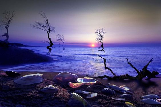 They were like dancing ladies as they stepped out into the shallows. The edge of golden light growing across the water silhouetted them in her view. They splashed and cavorted, and twirled round. There were no faces, but legs and arms, and bushes at the tops that looked like heads. She wasn’t yet familiar with the reason for this ritual, she only knew they were the essence of trees that broke free and came to embrace the water. Was it their way of bringing water to the trees? She didn’t know. She only knew that once the tip of the sun crested the water’s far edge, they would rush back into the trees and not be seen again until the next morning. She had to be fast if she wanted to reap any nourishment from this visit.