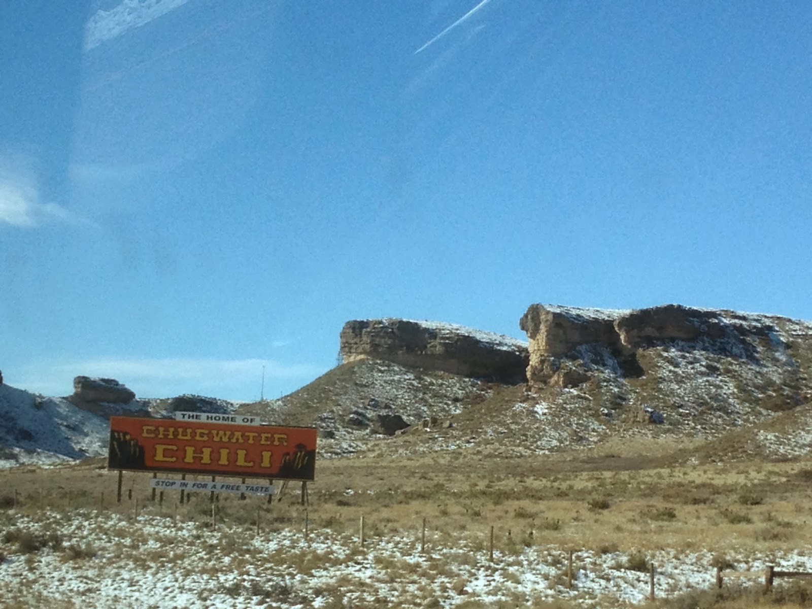 Less than an hour down the road from Douglas, Wyoming, is the quiet little village of Chugwater. We would have flown, or driven, if you prefer, right by except for the intriguing billboard announcing Chugwater Chili. What was intriguing about it? Well, it wasn't the typical hotel, motel or fast food advertisement, plus it was all alone with only rugged wilderness surrounding it. That got our attention, plus it was lunch time and we were hungry and truly sick of another variation of "fast food". And, well, a confession, we'd tried out the same chili last year. So we hit the exit ramp and you know, you just can't pass up those opportunities.Chugwater Chili has an interesting story - check out their website if you're interested. But it appeared to me like a small place collaborating with each other to succeed. Because besides the chili there were Chugwater t-shirts, spices and other parapanalia and an inventory of books propped in holders on tables.