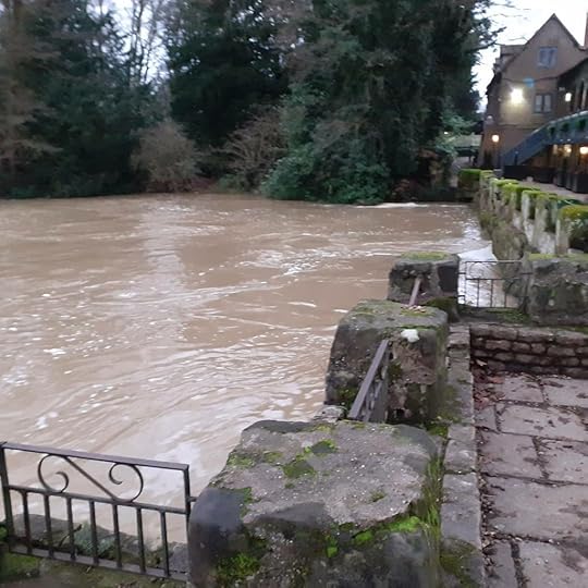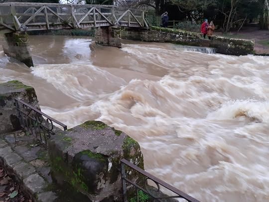 And so we were among those drawn once again to the Saxon Mill, near to my home in Warwick. Our purpose: to gaze in wonder and exhileration, and experience the drama of the swollen river Avon. I felt as if we were on an island surrounded by the dynamic power of racing water.