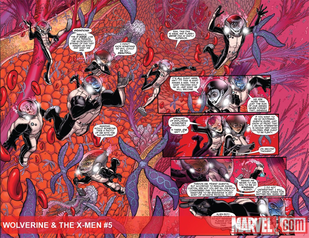 Many of the students and teachers from the Jean Grey School now have their own accounts on twitter. There's a list of them here. Recently they played out an original scene that can be read in conjunction with WOLVERINE AND THE X-MEN #5, involving Beast's Biology 101 class examining the wonders of the mutant body in an up-close and personal setting.