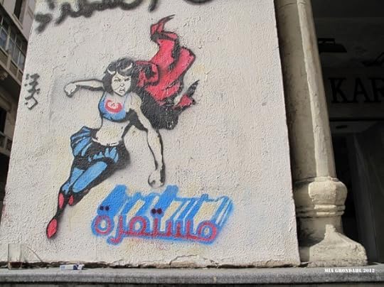 Il graffiti al Cairo, dove la rivoluzione è approdata anche sui muri, parla di quella ragazza che i soldati picchiarono e semi-denudarono, in autunno. La ragazza che aveva un reggiseno celeste. Rappresentata, sul muro, come una wonderwoman.