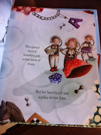 So when the book arrived, Annabelle and I were having drinks and brownies and I read the picture book out loud to both of us. Fun! And even more fun? Annabelle in the book gets a red-and-white polka-dotted dress (though some tragedy befalls it!), and my Annabelle loves red-and-white polka-dotted anything!
