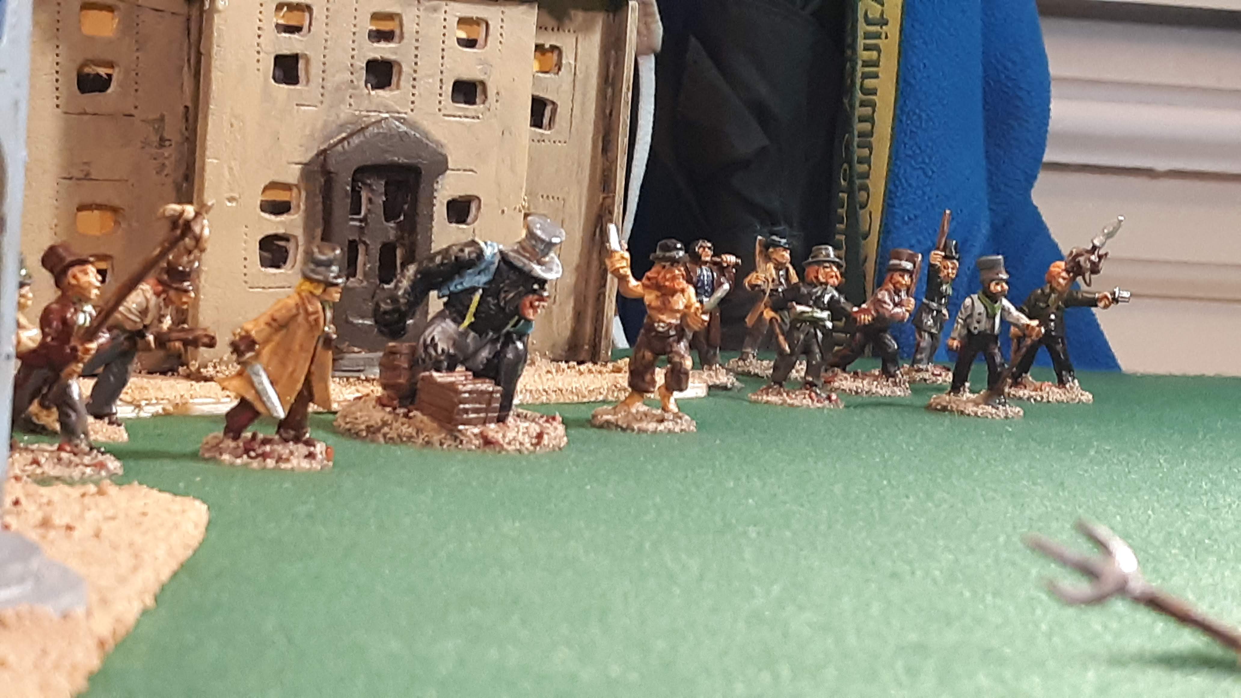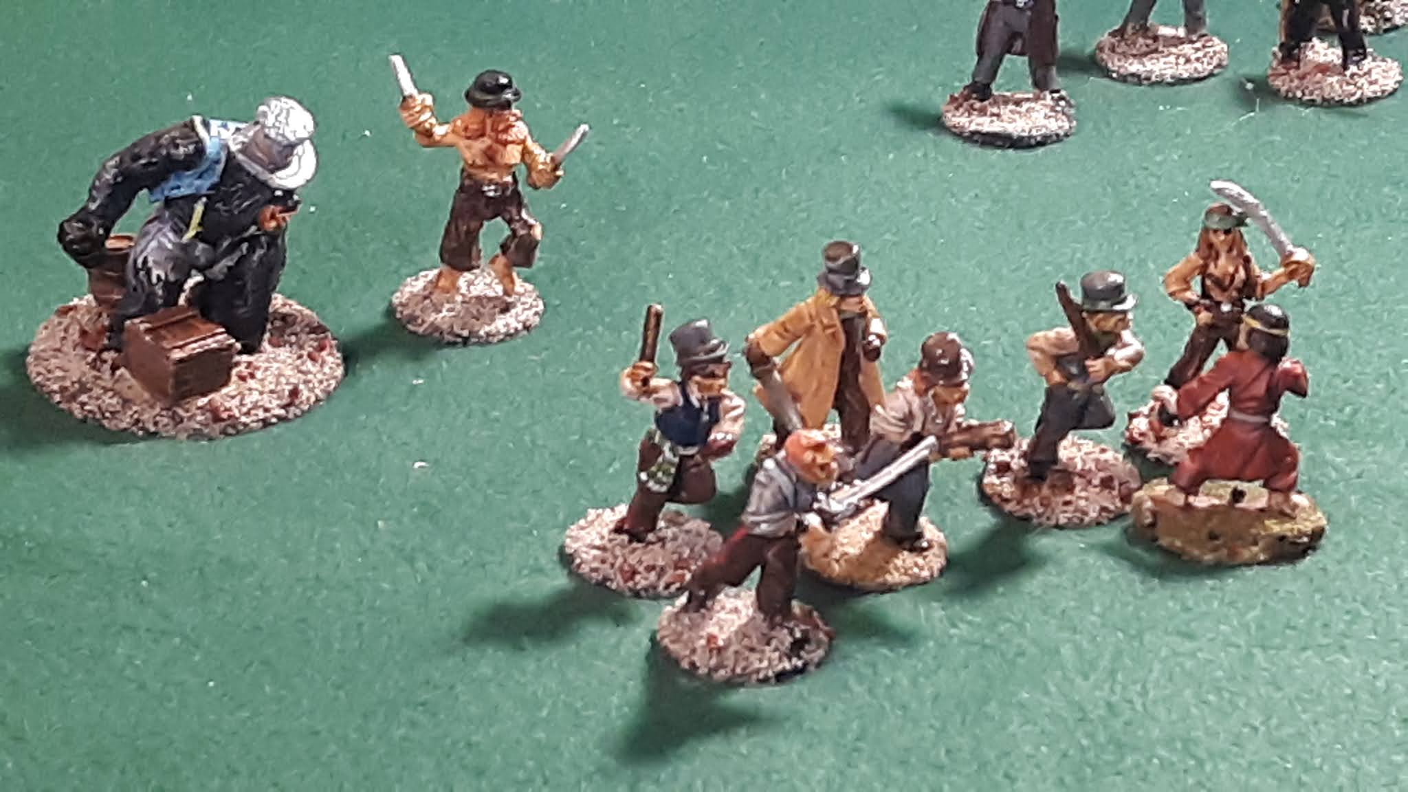Looking for suitable bad guys, I chose my recently painted "steam punky" Dead Rabbits gang.