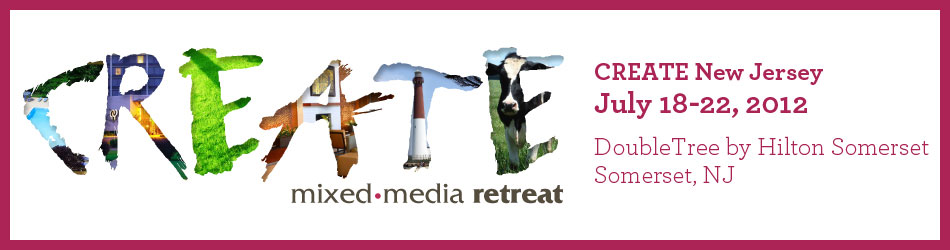 Registration for workshops at CREATE New Jersey, a mixed media retreat sponsored by Cloth Paper Scissors, goes live today at 2pm Eastern time. The retreat runs from July 18th to July 22nd and I will be teaching four workshops: A Box of Dreams, Collaboration Station, Mixed Media Dossier, and Text Tiles.
