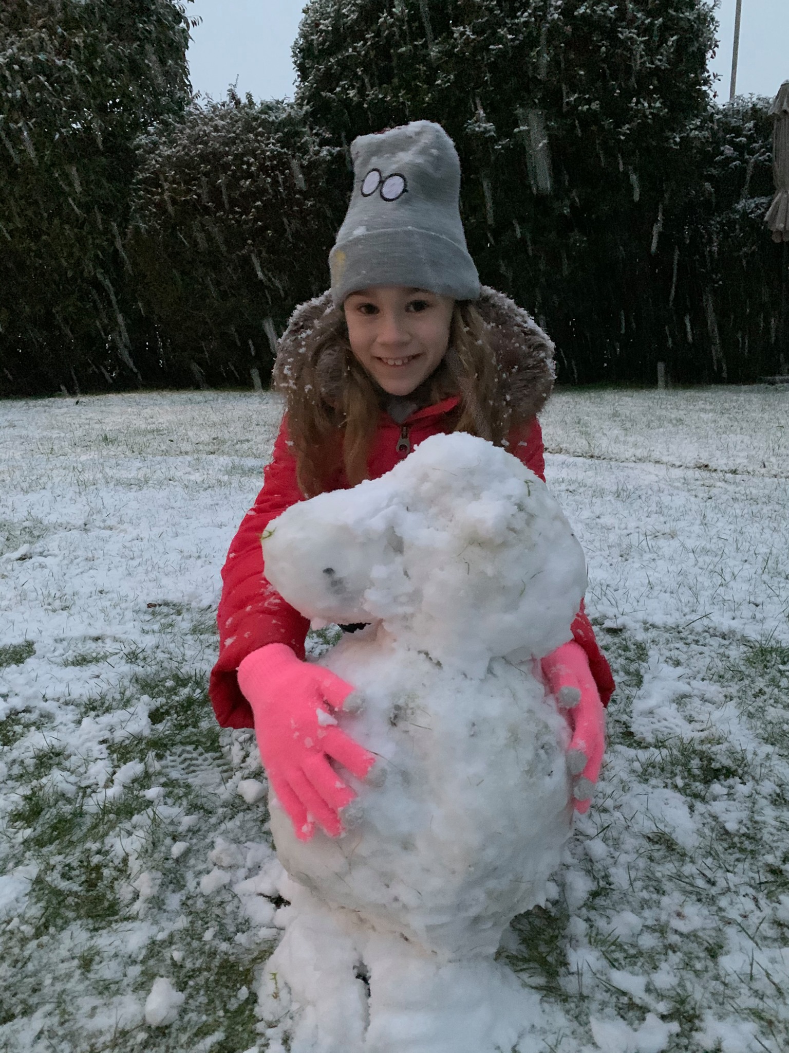 I'm not sure he'd have survived long in the frozen wastes outdoors, though. Because, at last, and much to the delight of at least one daughter, we've had a sprinkling of snow, not enough for a snowman but enough for what I'm reliably informed is a snow puffin: