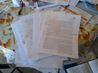 For those who read my last post, you know that I printed out the novel-to-be for a hard read with red-ink changes, corrections, deletions, and revisions. For those who didn't read my last post, now you know (you can follow my blog by clicking on "follow" button in the lower right column). The next order of writing will be to make the changes to the manuscript. And then it's probably on to my editor at Wings ePress unless I decide to give it one more read (and I most likely will).