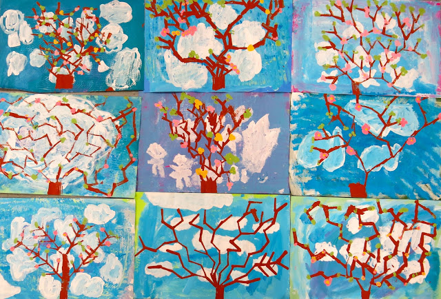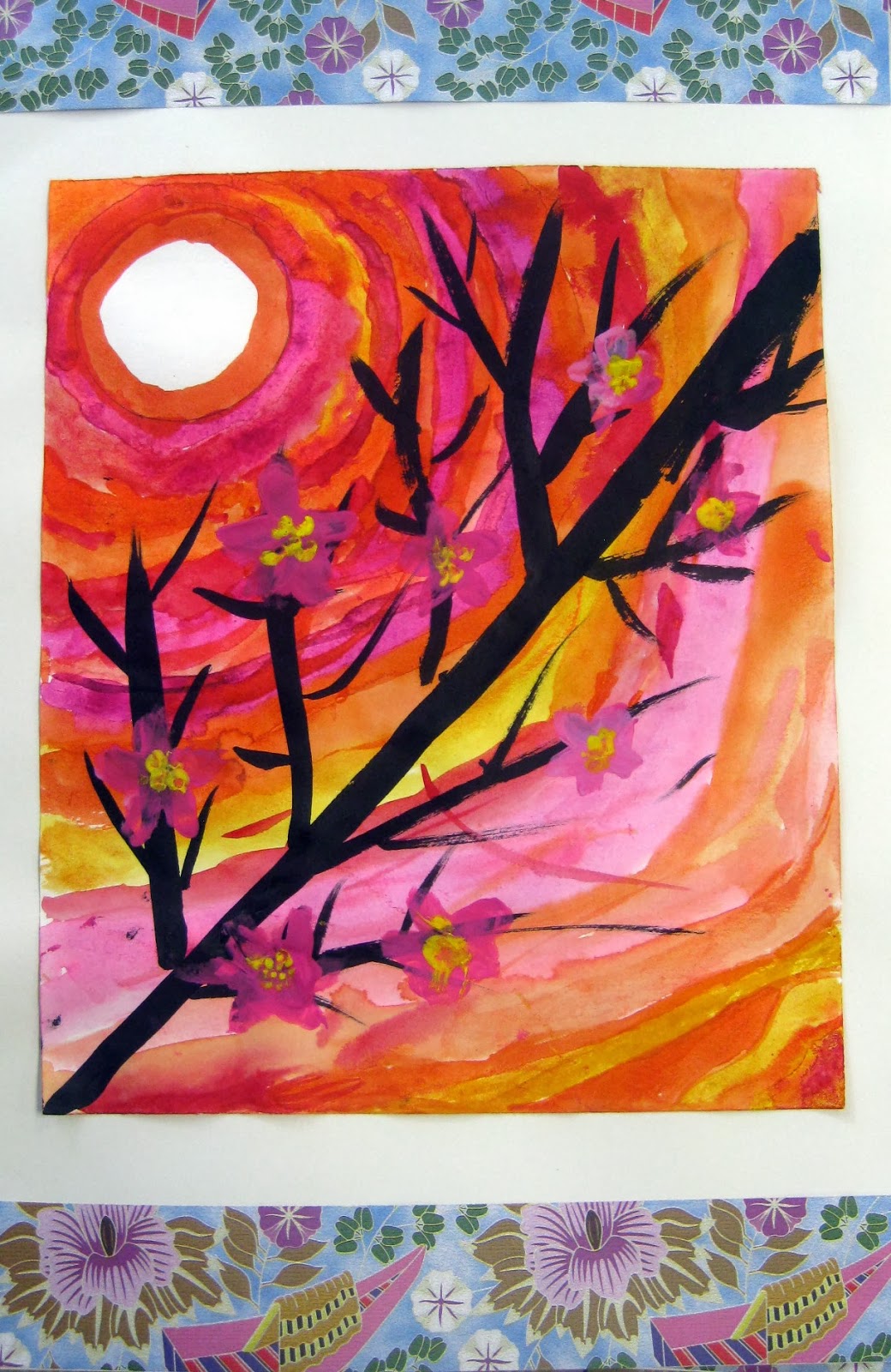 Love these beautiful cherry blossom paintings created by second grade! Lesson details right here.