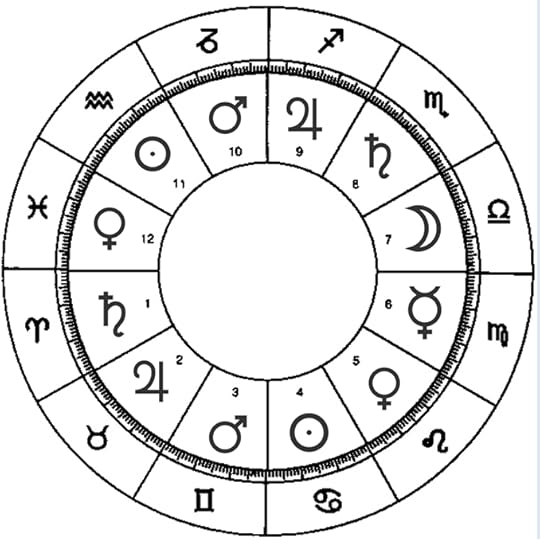 The cycle repeats beginning with the 8th house, associated with Saturn, a malefic planet connected with death and probably with miscarriages and maternal mortality in childbirth. Jupiter, a symbol of travel, religion and learning falls in the 9th house. Mars, a symbol of the forceful assertion of authority, is linked to the 10th. The Sun, a symbol of friendship, benevolence, and recognition falls in the 11th. Finally, Venus is linked to the 12th house “which withdraws from the Ascendant and does not look at it” (p. 394) and apparently Venus in this position can signify enemies, sorrow, envy, slander, cunning and riding animals (perhaps a patriarchal view of unsupervised women or the nature of Venus, which spends a lot of time close to, and hence burned by, the Sun). Interestingly, in Jyotish the 12th house (paired with Venus in the Chaldean order of the orbs of planets) is a house of the pleasures of the bed.