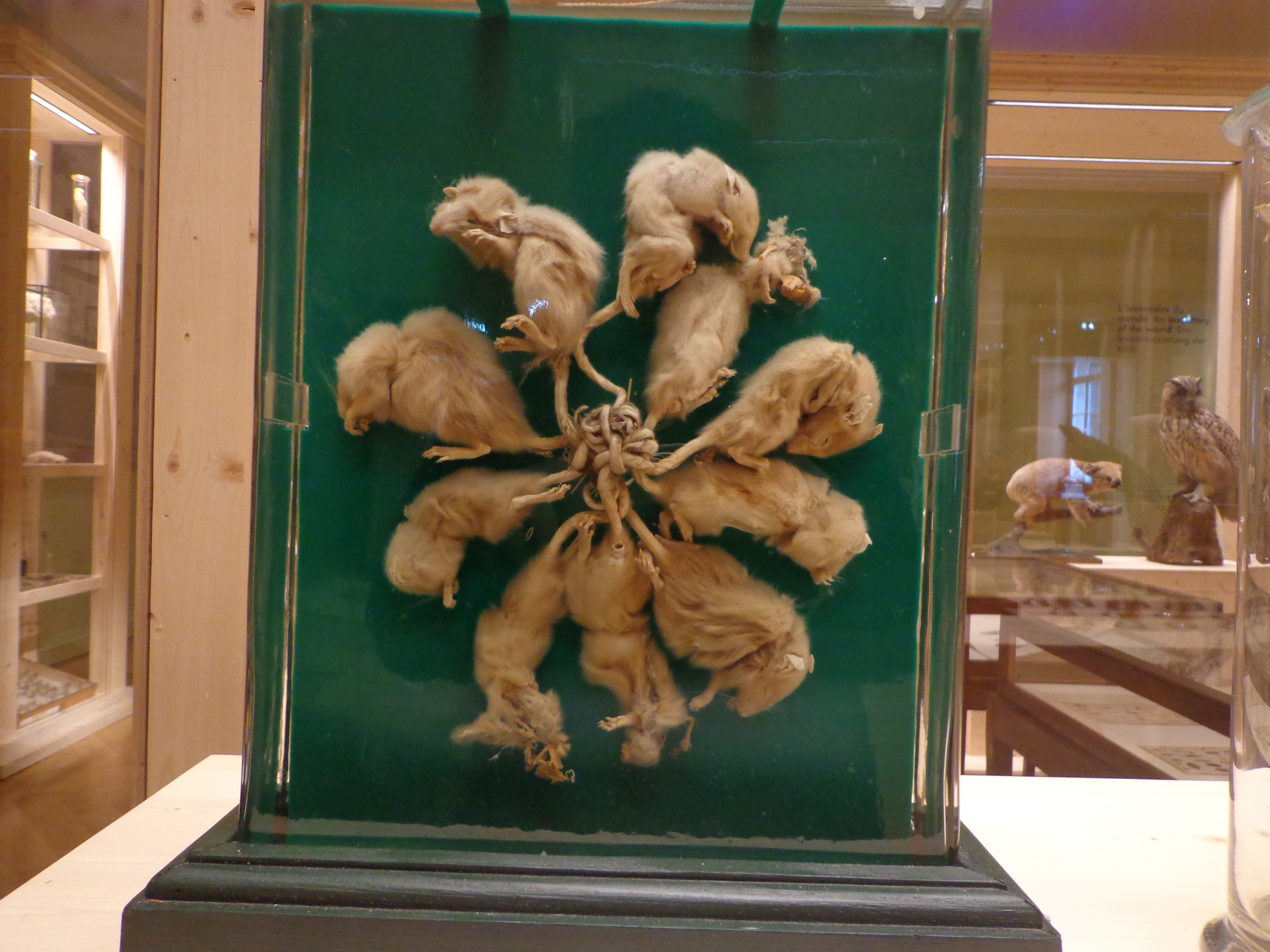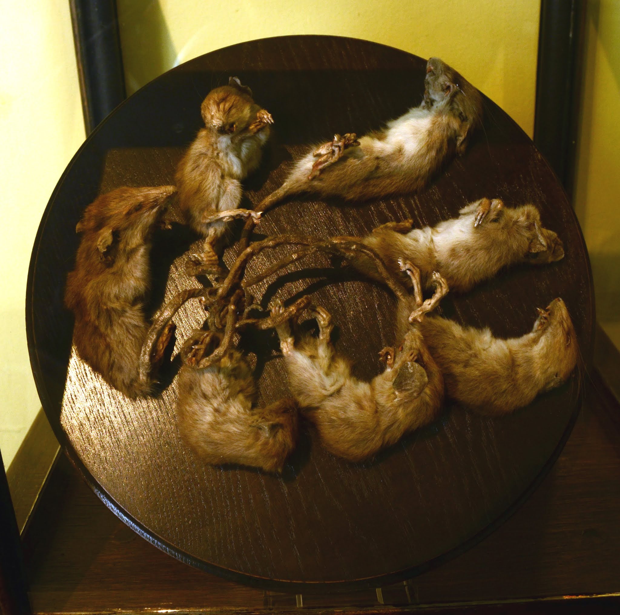 Since then, more than 60 specimens have been recorded, spanning the time period 1612-2005, though at least 18 of them are of dubious authenticity (some rat kings have been fraudulently created as unusual - and expensive! - souvenirs for the unwary traveller or curio collector). Furthermore, despite being associated with superstitions that their discovery is a portent of the plague and other evils, several rat kings are greatly-prized exhibits in various museums.