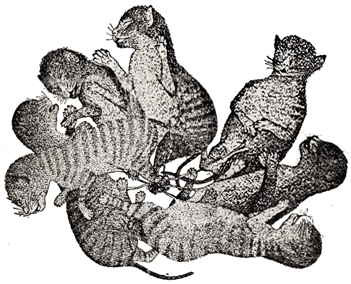 Analogous to rat kings, mouse kings, and squirrel kings is the even more obscure phenomenon of cat kings. Here, however, it is the umbilical cords of kittens in newborn litters that are tangled and intertwined, not their tails. Such curiosities are extremely rare, but at least a dozen have been documented in the scientific literature.
