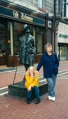 But that initial quote really resonated with me.  O'Brien is suggesting that the stories told by our elders about their Lives Before Us, and the stories told them by their elders, create a continuity with previous generations: an alternate reality, so to speak.  It this sense of connection with past generations that compelled me to write their/my story of the Homestead Strike of 1892.   Eddie and George W. at the Machine Shop, 1910     My father told and retold the story of his grandfather's death in the Homestead Works in September of 1892; however, his story was focused on the horrors of the experience.  Dad--an actor, drama coach, and playwright--loved drama.  The story consisted of two parts: a description of the explosion that resulted in the death of his grandfather and three other men, and the scene at the bedside of the dying patriarch, with his eleven children at his bedside.   Dad and me, c. 1946The first part was sometimes augmented by stories of terrible accidents at the Works. One I recall in particular described the killing of a worker by molten steel spilling into the casting pit.  I can't remember if Dad actually witnessed this, but he told it as if he had.  The second part he sometimes told without the first. Dad would dramatize the scene, adding specific dialog, sometimes of a serio-comic sort.  "Germany stinks," John Paul would say from his deathbed. "Despite all, I'm glad to have come to America and glad to be an American."  He would then admonish his children to "stand by America"--a phrase that sounds suspiciously like an exact quote from his father, George W.     I can't help wondering what the story my grandfather Busch told Dad was like. I'm sure it was quite different.  Grandpap and Dad had such different temperaments.  My father Edward inherited more than his mother's surname, Edwards, from her Welsh ancestors.  Eddie was a born teacher and actor, loving to perform for any size audience.  His retirement project was to write and publish his memoirs, Full of Sound and Fury, which he passed out to friends, family, and former students. Unhappy bat boy, front; George W. fourth from left rear, 1919      My grandfather, on the other hand, supervised hundreds of workers in the Homestead machine shop. He worked under tremendous pressure much of the time, but always stayed cool and focused.  His son was an introvert, emotional and high-strung. One of Dad's stories was how disappointed Grandpap had been when young Eddie had been downright miserable being made to serve as bat boy or water carrier for the many athletic teams the former was involved in.  Dad showed me a photo of himself with the  Homestead Steel Mechanics' baseball team, 1919 AA champions. Dad pointed out how unhappy he looked and felt when the picture was taken. (Ironically, this photo somehow made its way onto the menus of at least two local restaurants as an image of Good Old Times in  Homestead.) Ceridwen & Dad, front, at reunion, c. 1979    It's significant that Ceridwen is the one who sent me the Tóibín article, for it is she who has taken up the torch passed down from Eddie through me.  A Goodreads librarian and top reviewer, Ceridwen's reviews are always, as she puts in, "hopelessly personal."  She sometimes recounts my stories, other family stories, and stories about her children in her reviews. In her review of Darkness Visible, Ceridwen poignantly expresses the connections she feels with generations past in Homestead. (http://www.goodreads.com/review/show/258461711)  She recalls the stories and experiences that make up the cluster of emotions she feels about the family legacy--from the singing of Welsh hymns in her childhood to the spreading of my parents' ashes on the banks of the Monongahela River at the Battle site.  I can't get through the piece without blubbering--but then again, this is "our" story.  Ceridwen and me with James Joyce, 1996     Apparently, it was not for naught that we named Ceridwen after the Welsh goddess of poetic inspiration. (Both she and I like to tell the story of shape-shifting Ceridwen chasing around her shape-shifting offspring, Taliesin, the bard.)  After all, she comes from a line of storytellers named, consecutively, after the first U.S. President, a family of hymn-singing Welsh drunkards, and the title character in an 1896 English Gothic novel.      Tóibín might have "killed" his mother in his writings, but Ed, Ceridwen, and I have made our forefathers--and in her case, mother--live.