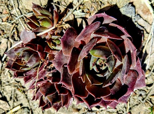 The paths aren’t far enough along to show in a photo — mostly all you’d see is the gray fabric, so here are photos of the hen and chicks I planted last year. They are doing surprisingly well considering the harsh winter we had.
