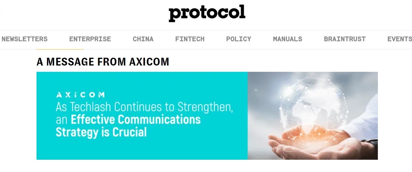 * A collaboration with Protocol and AxiCom’s Katie Huang Shin and Tod Freeman. The full pieceAs Techlash Continues to Strengthen, an Effective Communications Strategy is Crucial