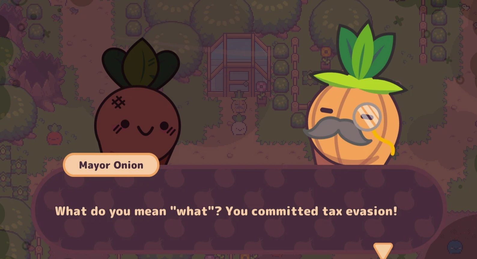 I bought Turnip Boy, first and foremost, to support the very concept. Tax evasion! In a video game! Not since Tax Evaders for the 2600, to my limited knowledge.