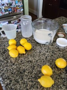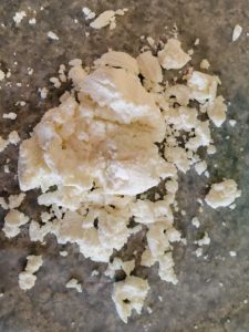 Last week, I traded a sour dough loaf for some goat’s milk from a writing friend. The process is really easy. Just bring a quart of milk to 180 degrees Fahrenheit. Then stir in lemon juice and vinegar. After about an hour, pour the cheese into a colander over a bowl to catch the whey. I worked one quart at a time.